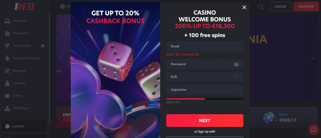 Creado en el año 2022, 1Red casino está abriéndose paso en el mercado de los casinos en línea. Actualmente cuenta con un catálogo de juegos que incluye más de cuatro mil títulos, catorce métodos de pago (entre los cuales hay varias criptomonedas incluidas) y acepta jugadores de varios países de Latinoamérica, Argentina incluida. En 1Red casino podrás disfrutar de: