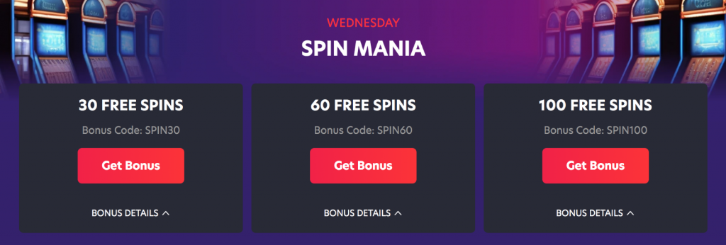 | Giros o tiradas gratis | Puedes conseguir, según la cantidad de tu depósito, de 30 a 60 tiradas gratis. Incluso puedes obtener 100. |
